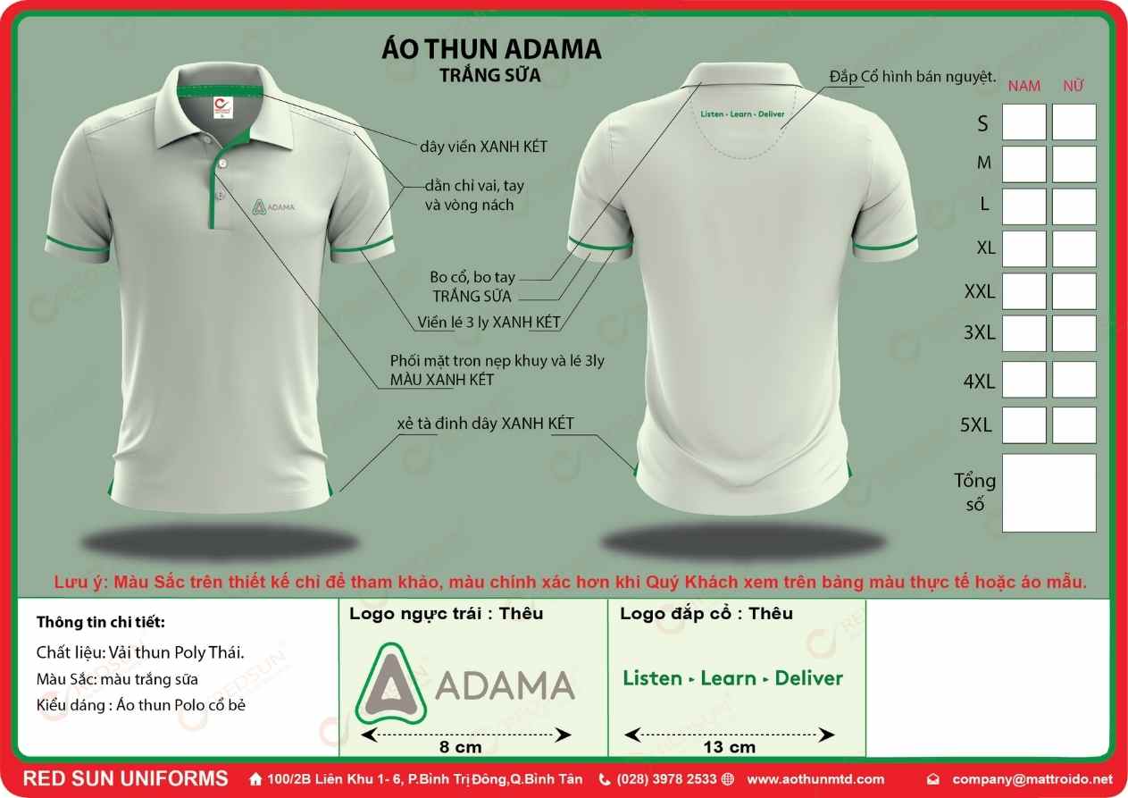 Cam kết màu sắc: Luôn đảm bảo màu sắc chuẩn theo yêu cầu nhận diện thương hiệu, hình in/thêu không bị nhòe hoặc phai nhanh sau nhiều lần giặt, kể cả trong môi trường làm việc khắc nghiệt.