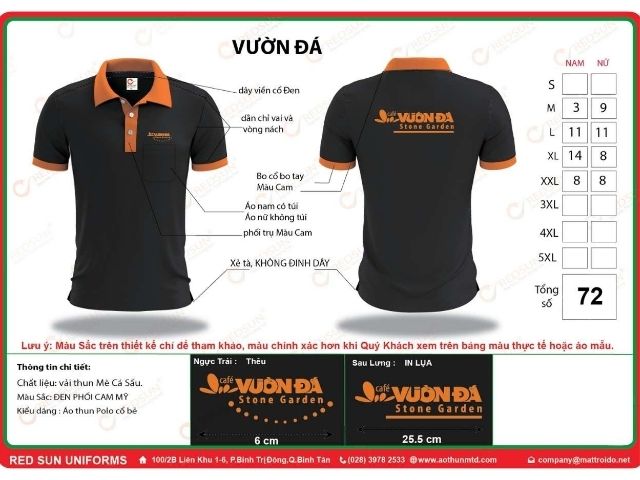 Sản xuất áo thun theo yêu cầu: Có khả năng tùy chỉnh từ màu sắc, form dáng, kiểu cổ (cổ tròn, cổ bẻ), tay áo đến vị trí in/thêu.