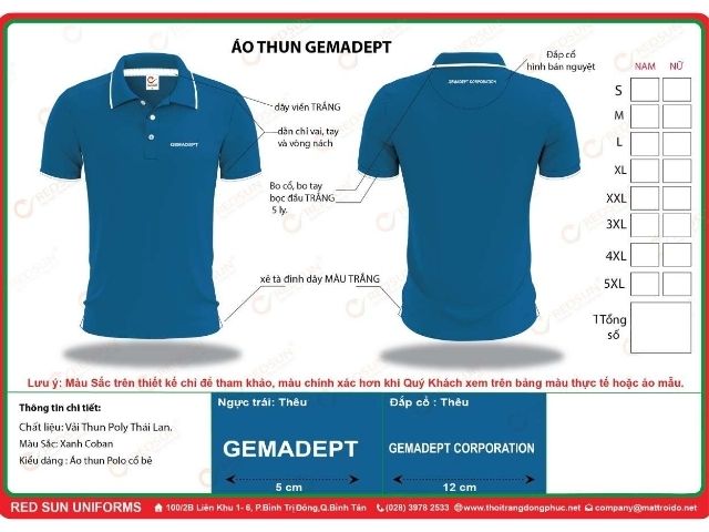 Tại CÔNG TY TNHH ĐỒNG PHỤC RED SUN, chúng tôi chuyên cung cấp dịch vụ may áo thun đồng phục doanh nghiệp chất lượng cao, đáp ứng mọi yêu cầu từ thiết kế đến hoàn thiện sản phẩm. Với kinh nghiệm nhiều năm trong ngành may mặc, chúng tôi tự tin mang đến những bộ đồng phục chuyên nghiệp, giúp nâng tầm hình ảnh thương hiệu của bạn.