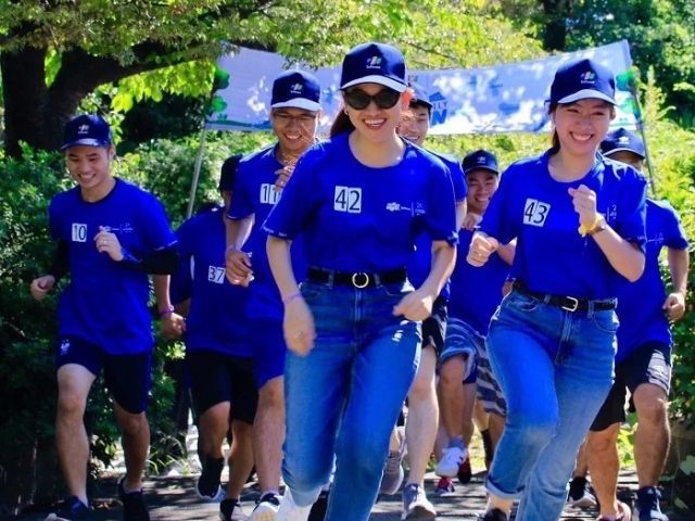 Thiết kế logo/slogan: Đảm bảo logo và slogan được đặt ở vị trí hợp lý, kích thước chuẩn và màu sắc tương phản rõ ràng với nền áo xanh coban để tối ưu hiệu quả quảng bá.