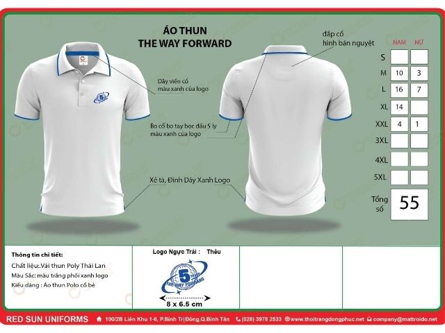 Hãy để Công ty TNHH Đồng Phục Redsun đồng hành cùng bạn trong việc tạo nên những chiếc áo thun đồng phục cao cấp tinh tế, giúp doanh nghiệp bạn xây dựng hình ảnh chuyên nghiệp và gắn kết đội ngũ. Với chất lượng vượt trội, giá cả hợp lý và dịch vụ tận tâm, chúng tôi tự tin mang đến sự hài lòng tuyệt đối.