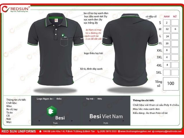 Trong bối cảnh doanh nghiệp ngày càng chú trọng đến hình ảnh thương hiệu và văn hóa nội bộ, xưởng may áo thun cao cấp đã trở thành lựa chọn hàng đầu để tạo ra những bộ đồng phục tinh tế, chất lượng vượt trội, giúp doanh nghiệp khẳng định đẳng cấp. Công ty TNHH Đồng Phục Redsun, với hai xưởng sản xuất hiện đại tại TP.HCM và Bến Tre, tự hào mang đến dịch vụ may áo thun cao cấp theo yêu cầu, đảm bảo sự tinh tế từ đường may đến in ấn, giá cả cạnh tranh và giao hàng nhanh chóng trên toàn quốc.